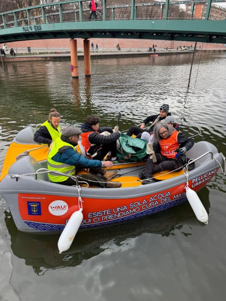 Con il Pellicano Urbano, la nostra barca completamente elettrica, puliremo anche i fondali e, con dei magneti, potremo recuperare i rifiuti depositati sui fondali del canale.
